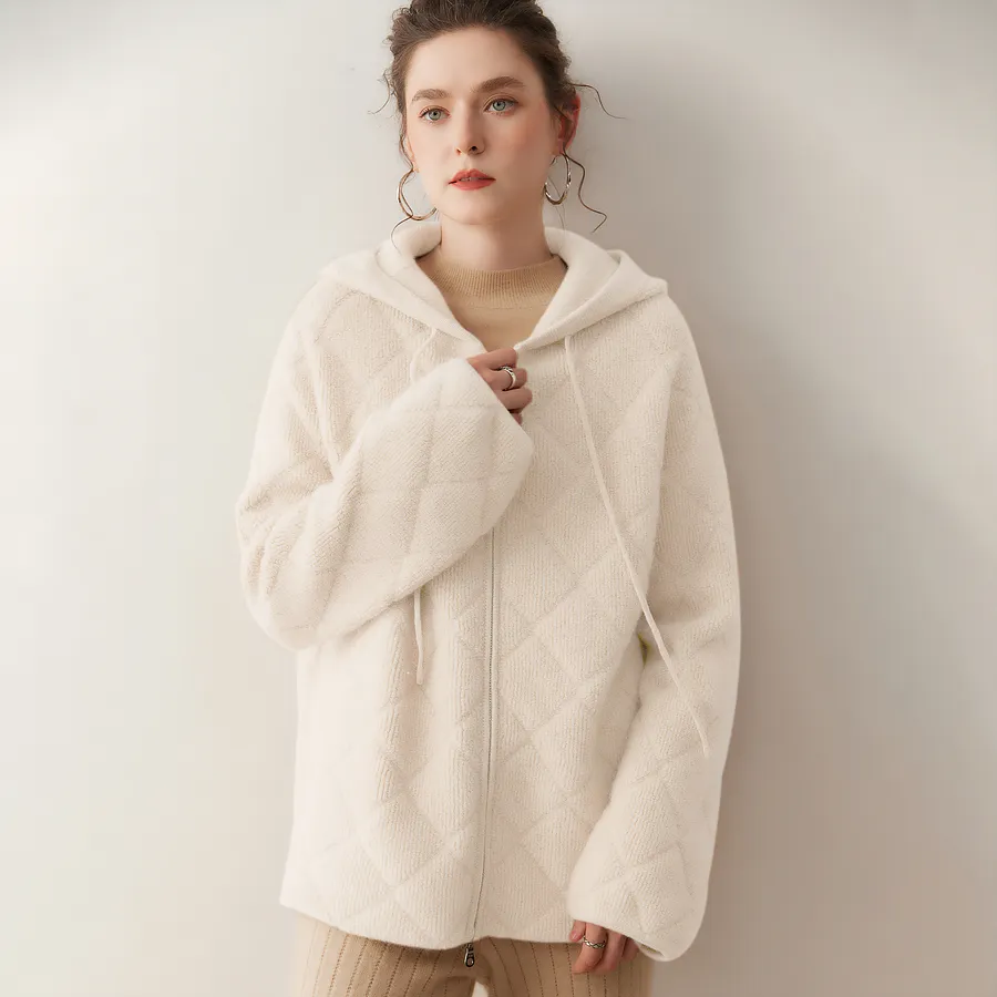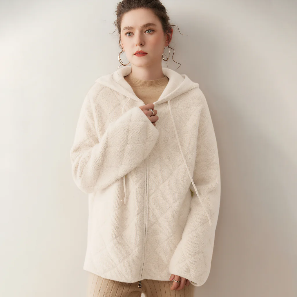 The detailed diamond quilting provides both structural elegance and enhanced insulation. Its geometric pattern brings a refined, retro touch to the simple design, elevating casual style with intentional craftsmanship.